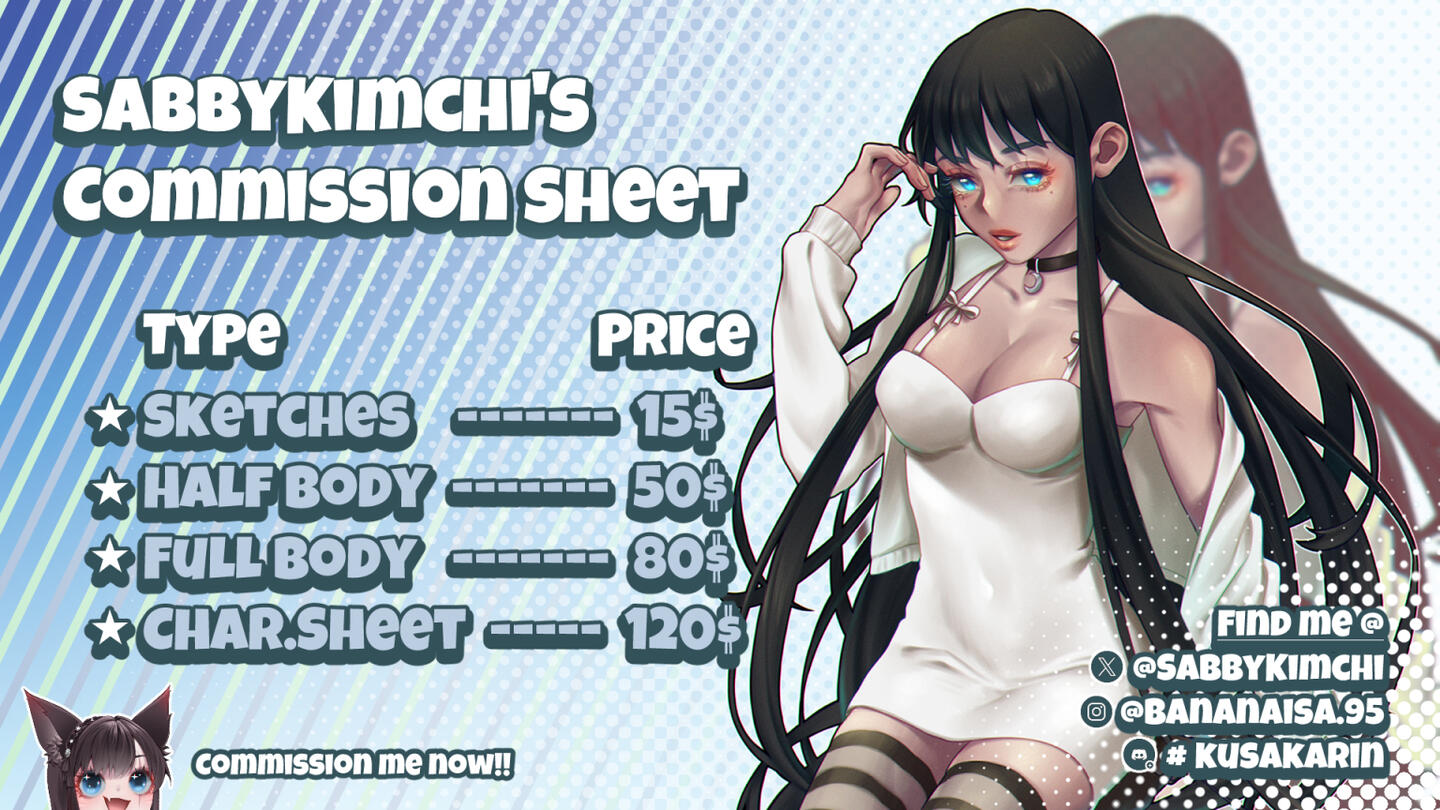 If you're not interested for a commission you can still support me by clicking the follow button on my social medias! It helps me a ton!Thanks for considering!